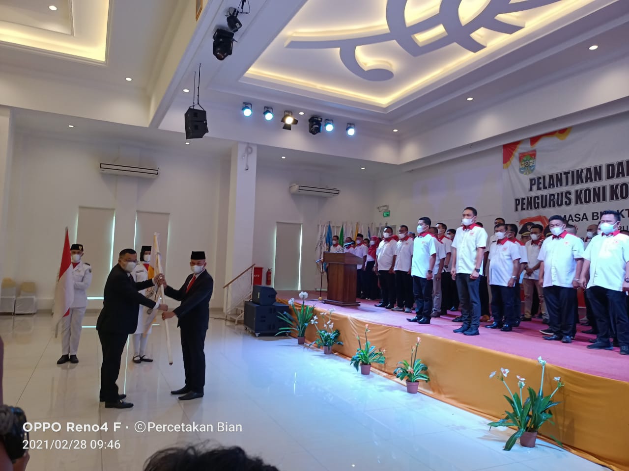 Beligat.com, LUBUKLINGGAU – Bertrmpat di Hotel Dewinda, Minggu (28/2) berlangsung acara pelantikan dan pengukuhan 117 Pengurus Komite Olahraga Nasional Indonesia (KONI) Lubuklinggau masa bakti 2021-2025. Prosesi pelantikan dipimpin Ketua KONI Sumsel, Hendri Zainudin. Hadir Walikota Lubuklinggau, H SN Prana Putra Sohe, Sekum dan wasekum Koni Sumsel dan sejumlah Anggota DPRD Lubuklinggau.